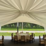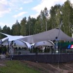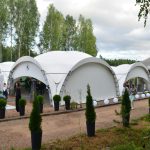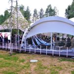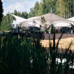 Пространство для мероприятий состоит из арочной тентовой конструкции ArcoTenso Grand 400 м2, которая вмещает в себя 200 человек в формате банкета и 350 человек в формате фуршета и паруса-террасы Membrane SunSails, которую можно использовать в качестве lounge-зоны. Шатер для мероприятий задекорирован в белых тонах, что позволит превратить его в роскошный банкетный зал.