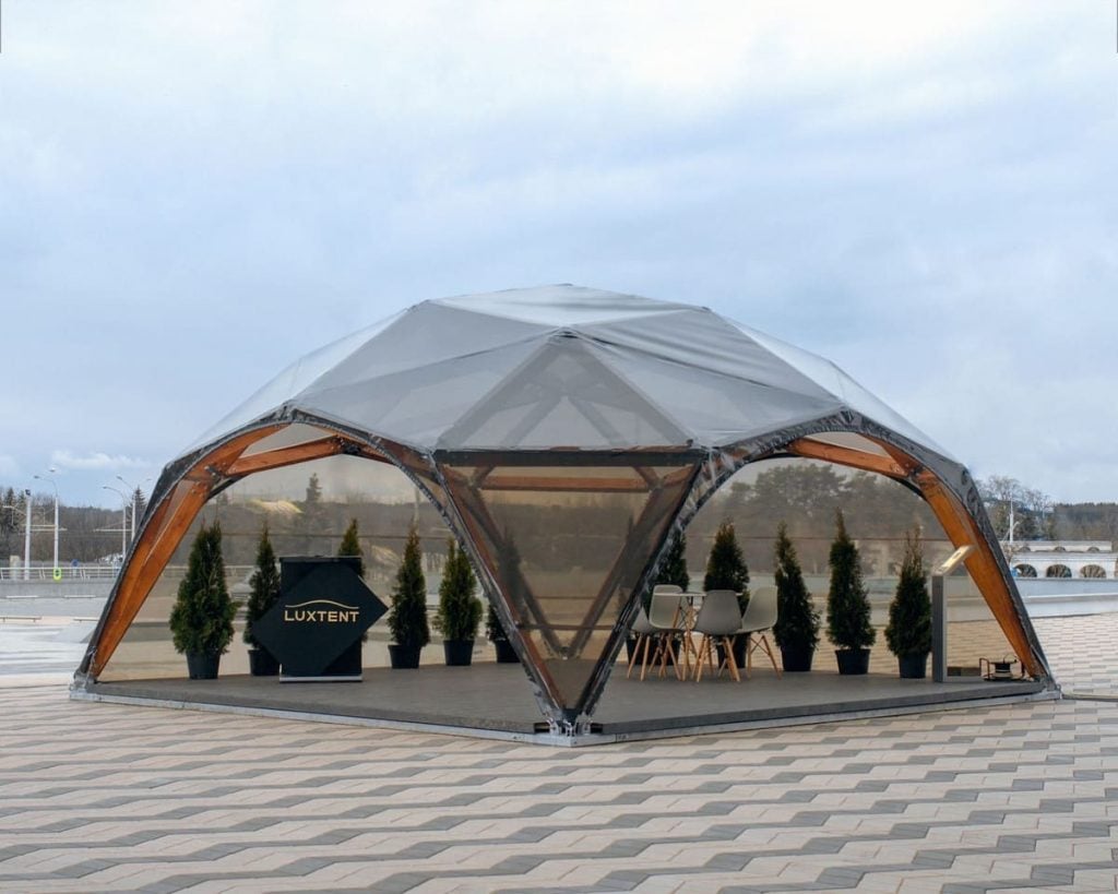 Главное преимущество предложения компании LUXTENT – большие шатры в Минске с широким выбором типовых проектов. В зависимости от назначения и количества человек, для которых приобретается шатер, на сайте компании можно подобрать модель конструкции по следующим критериям: Тип каркаса шатра. В каталоге представлены арочные, сферические и купольные шатры, натяжные и мембранные навесы, деревянные шатры, перголы.