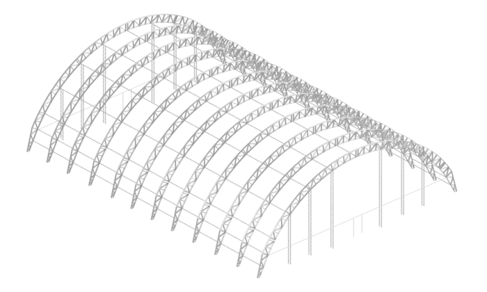 Арочный ангар HangArco L1800 (100×18) сочетает в себе протяженность и надежность: удлиненная форма с умеренной шириной и высотой оптимизирована для равномерного распределения нагрузок по всей арке.